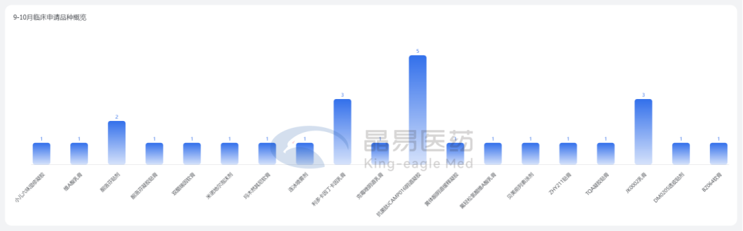 中药、化药均有1类和2类新药提交临床申请,中药新药品种数超过化药,包括小儿六味湿疹凝胶(1.1类)、玛木然其尼软膏(1.1类)、连冰喷雾剂(1.1类)、ZHY-211贴膏(1.1类)、TQA凝胶贴膏(2.2类)。
