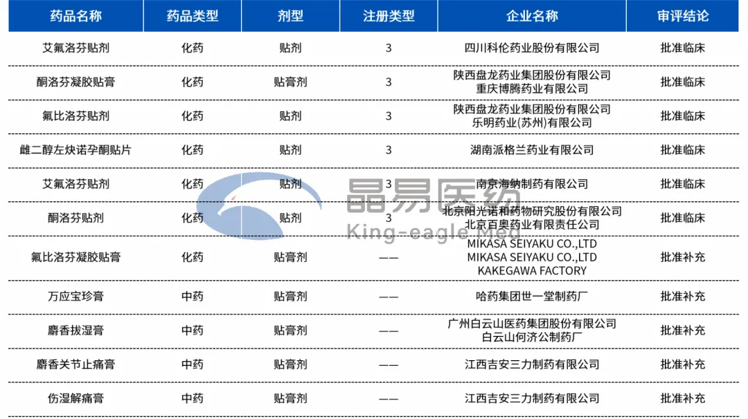 此外,一些热门化药贴剂/贴膏剂仿制品种也获得批件。